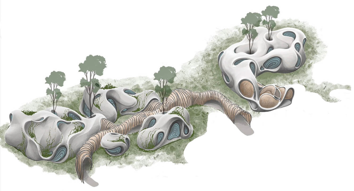 Throughout my professional experience, I've encountered limited instances of organic and irregular architecture. In the business realm, architecture often becomes diplomatic and rigid, shifting from an environmental-driven approach to one focused on monetary gain. As a result, situated in the northern hemisphere, I began searching for new examples of buildings that were innovative and inspired a built environment looking towards the future with nature as its central driver. This search led me to Roth Architecture.