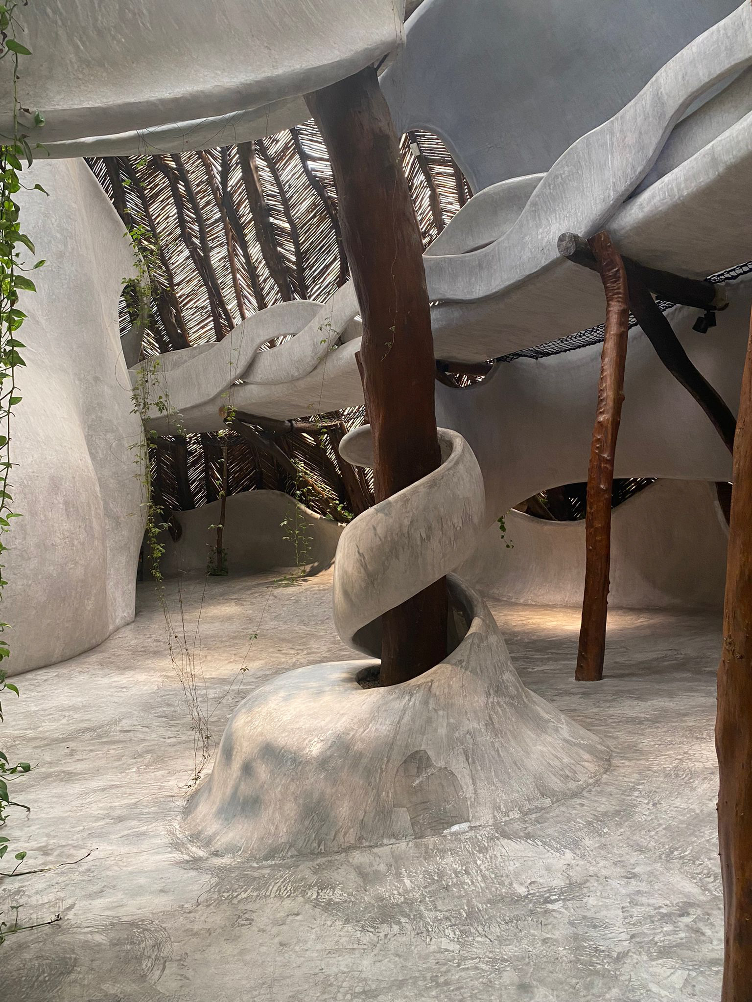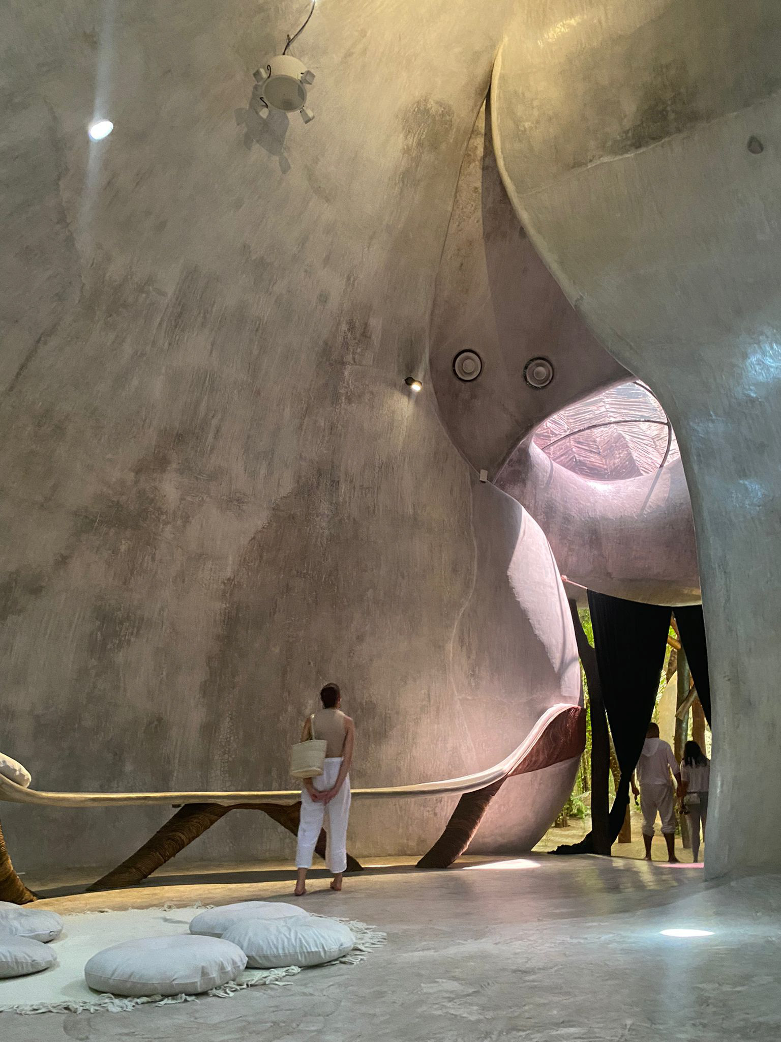 It being located in Tulum, Mexico, means the labour force is very experienced in concrete - making the ability to bend, curve and use concrete like play dough. There is lots to be learnt from his methods for all future space-making humanity does.