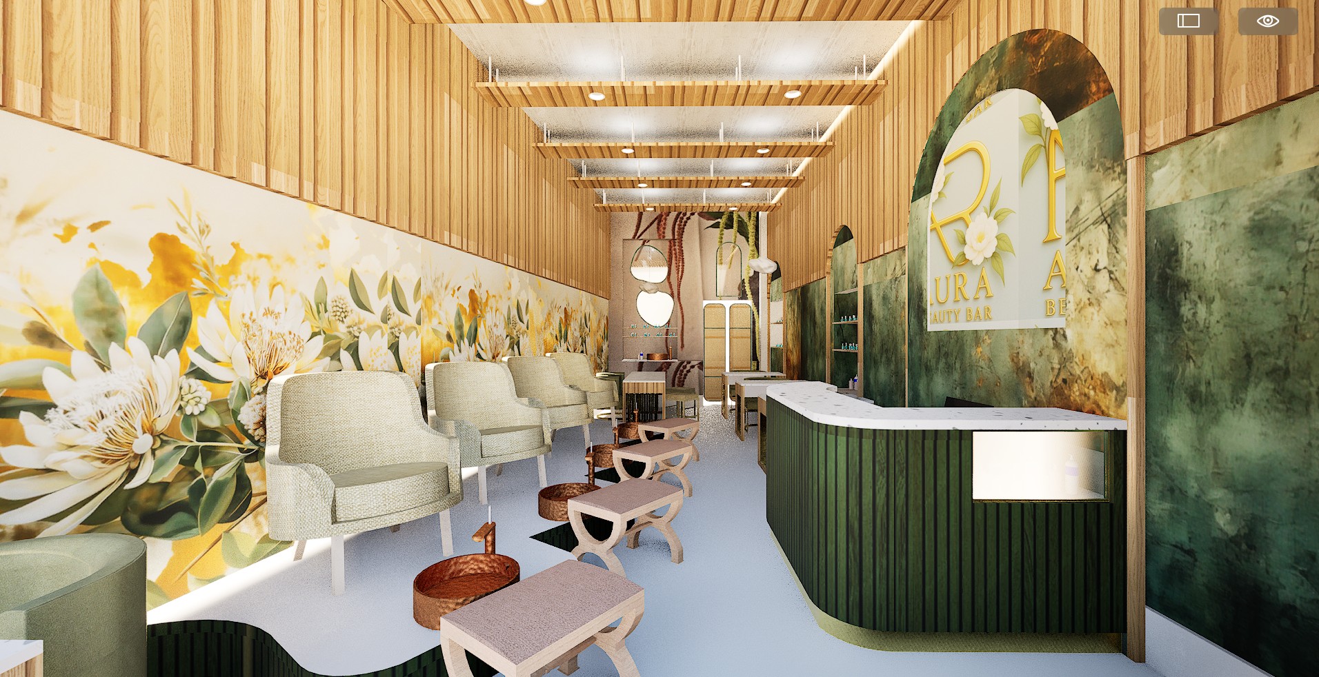An example of detail in projects completed in collaboration with Minthouse, showcasing our approach to transforming existing spaces through thoughtful design. Each project involved detailed moodboards and renderings to communicate design intent, working with natural materials and organic forms to create spaces that feel both fresh and timeless.